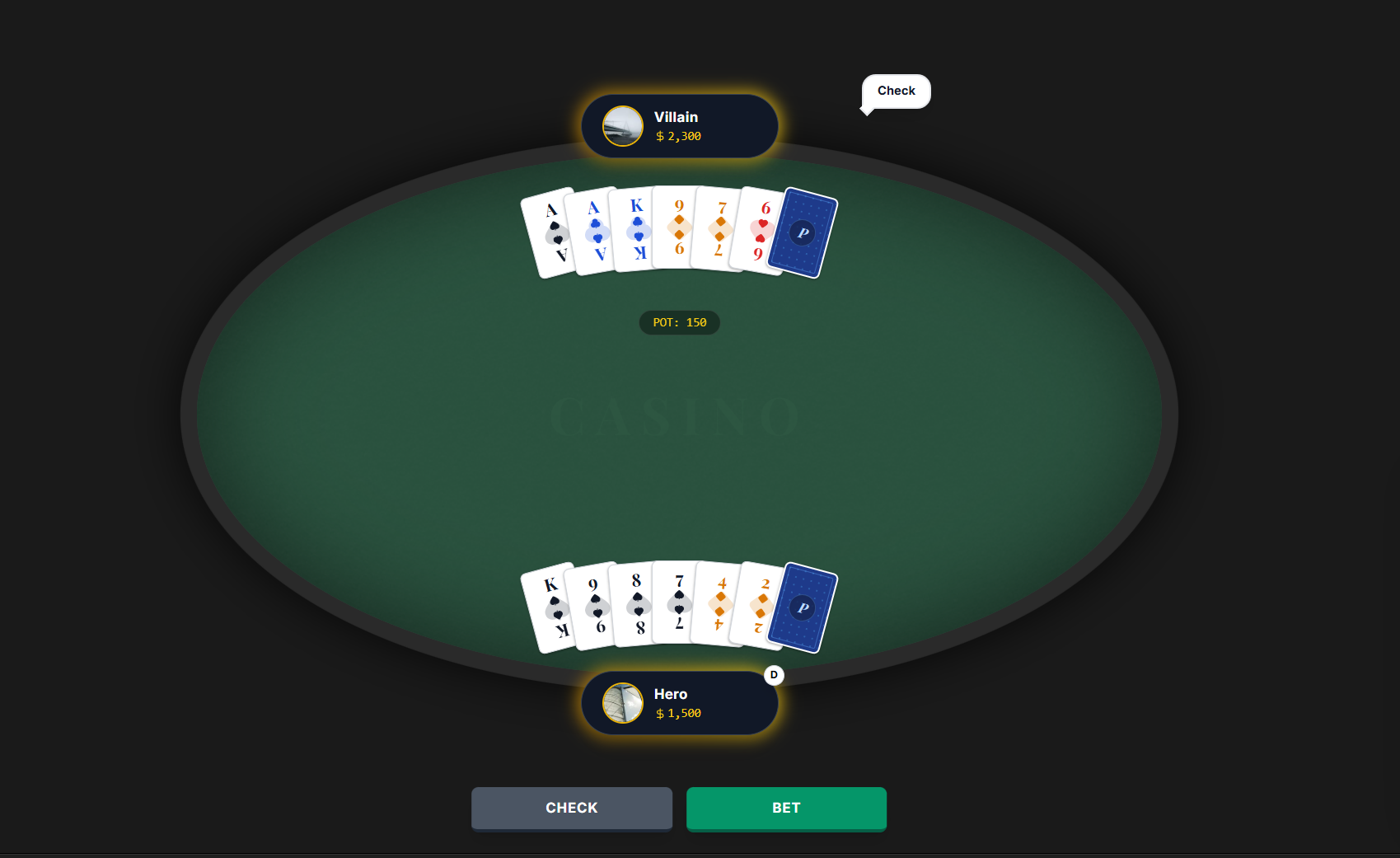 現在來到最後一輪下注(已經發了最後一張牌),前六張都是開的,最後一張只有自己知道。